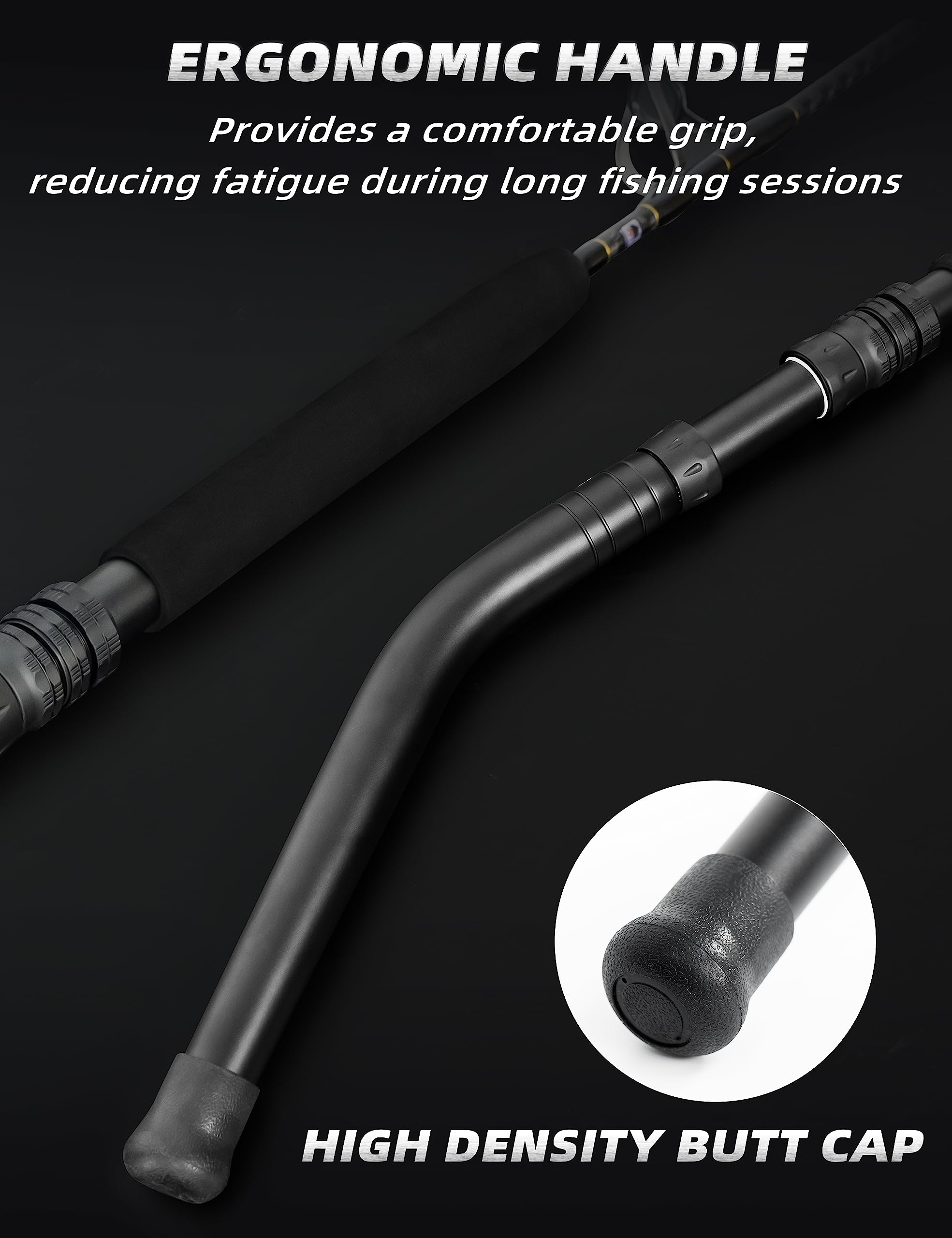 - Premium Carbon Fiber Construction: Crafted from high-quality carbon fiber, this trolling rod offers exceptional strength and durability while maintaining a lightweight design. Feel the power in your hands and experience ultimate control during intense fishing battles.