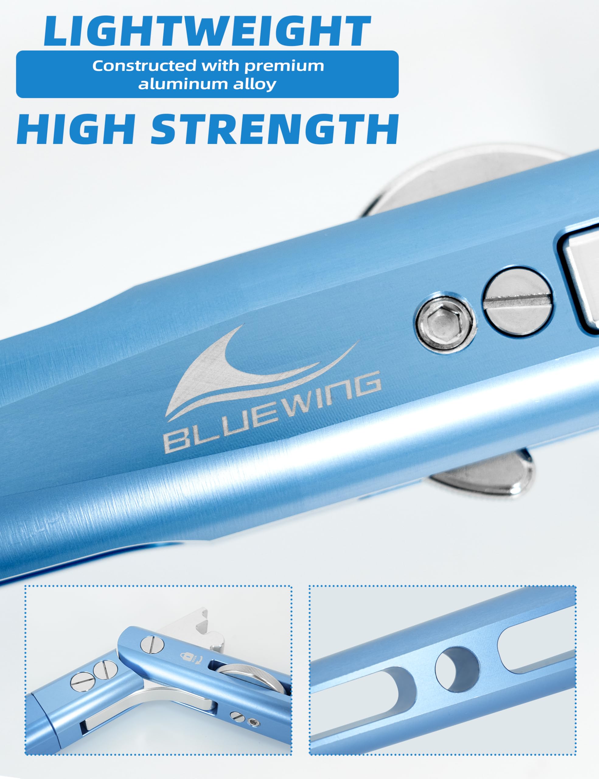 - Aluminum Alloy Material: BLUEWING rod butt is constructed with premium aluminum alloy, it boasts high strength, lightweight properties, and superior corrosion resistance, ensuring durability and reliability in various fishing environments.