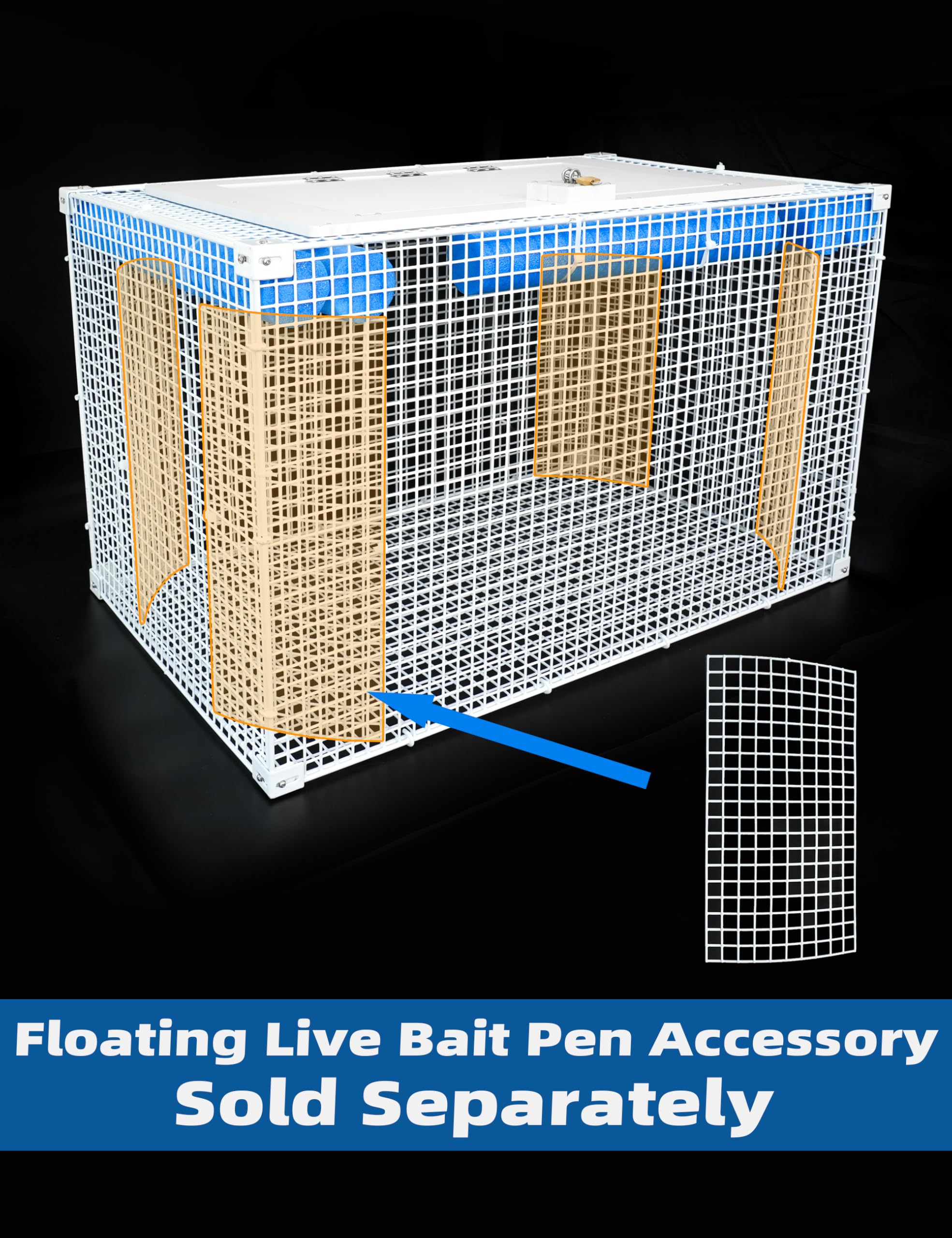 - Capacious Design: This live bait pen features a generous layout, perfectly sized to accommodate various bait fish species and sizes, ensuring ample space for your live bait.