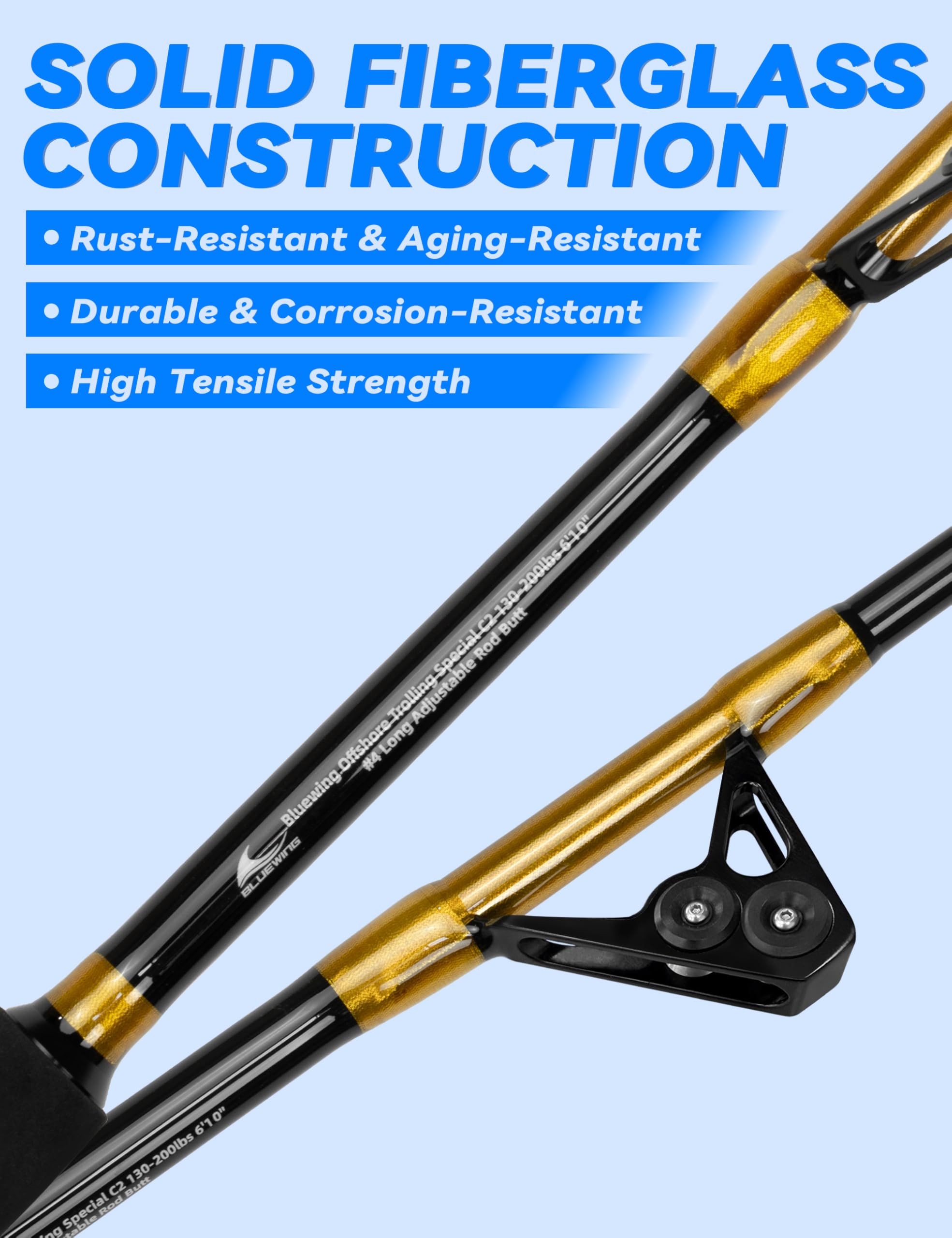 Solid Fiberglass Construction: Built with a one-piece solid fiberglass, this rod delivers unmatched strength, exceptional durability, and outstanding lifting power—making it the perfect choice for fighting large offshore game fish in tough saltwater conditions.